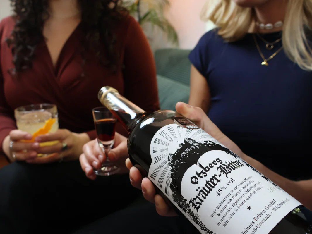 Nachdem unsere Basis fertig ist, runden wir sie mit Pfefferminzöl und italienischer Lakritze ab. Der der Otzberg ja auch nicht mehr der Jüngste ist, muss er sich vor der Party dann noch ausruhen: Mehrere Wochen reift er noch in unseren speziellen, großen Tongefäßen. Nur so verbinden sich die Aromen harmonisch miteinander – und ja, entwickeln auch die typisch starke Otzberg-Bitterkeit.