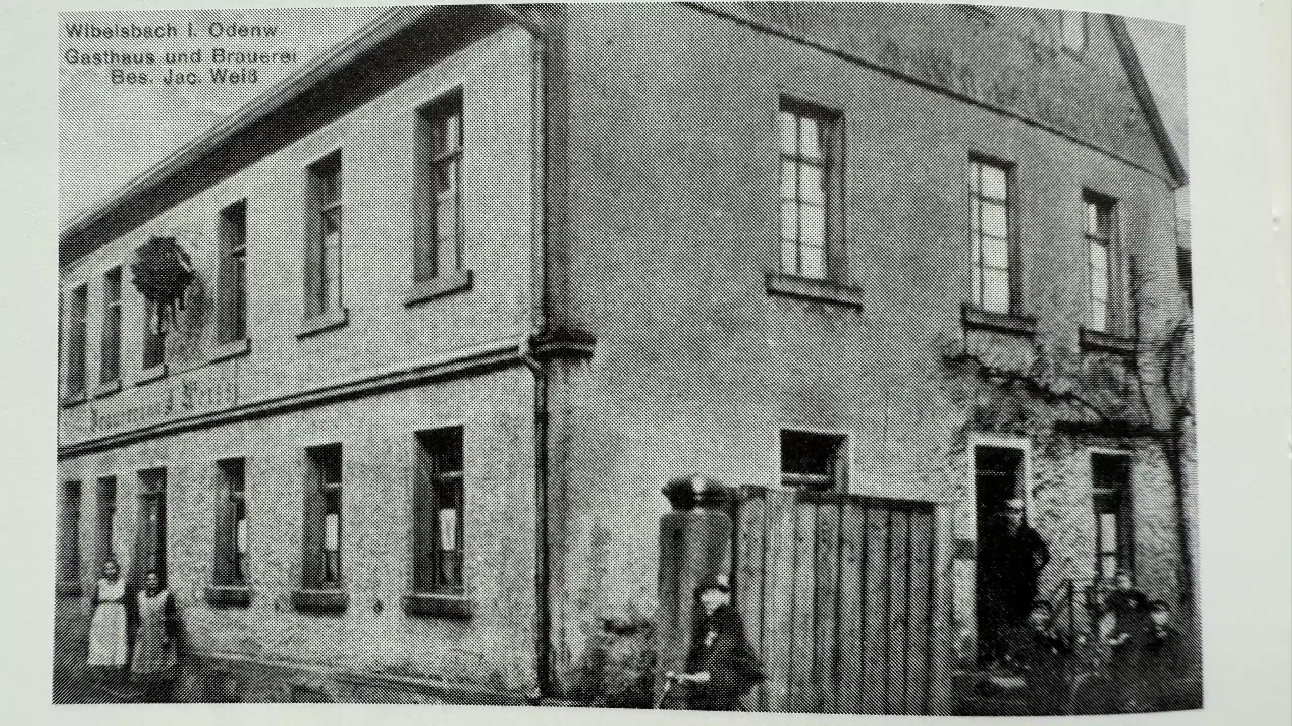 Die Story unseres Otzbergs beginnt vor mehr als 150 Jahren im südhessischen Wiebelsbach mit der Wirtsstube unseres Ur-Ur-Großvaters Jacob Weiß II. – das Bild zeigt das damalige Gasthaus und die Brauerei im Jahr 1889. Gerne trank man dort ein frisches, selbstgebrautes Bier beim „Kiefer“. Stets gut gekühlt, versteht sich. Für die Bierfässer hatte Jacob Weiß extra einen großen Kühlkeller gebaut.